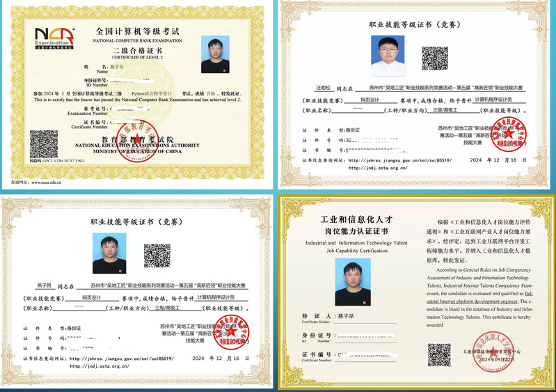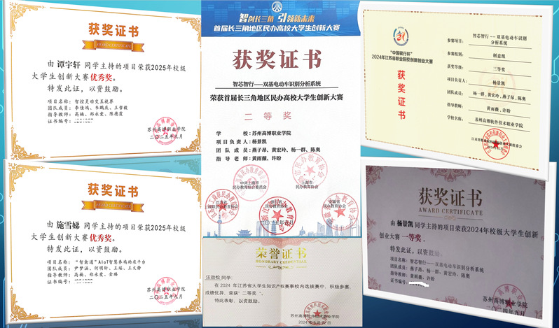 学生在全国性权威赛事中摘金夺银,近三年在“蓝桥杯”全国软件和信息技术专业人才大赛、“领航杯”江苏省大学生信息技术应用能力比赛等获省级以上奖项超30项。毕业生手握“人工智能工程师”等高含金量职业技能证书,整体获证率超过98%,成为就业市场中闪亮的“技能名片”。