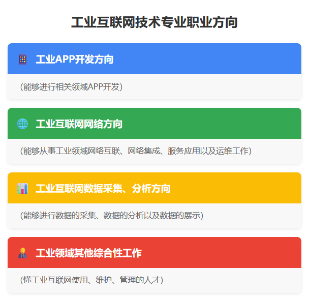 核心技能深耕 | 工业互联网网络互联技术、工业互联网数据采集技术、工业互联网标识解析技术、工业互联网数据分析技术、工业APP开发与应用 | 掌握工业互联网五大核心技能,打通设备联网、数据采集、标识解析到数据分析的全链路技术。 |