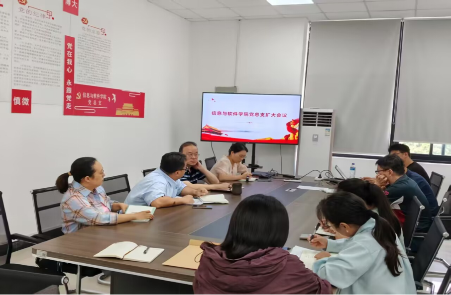 为深入贯彻落实新时代党的建设总要求,9 月 25 日下午 14 时,信息与软件学院在 14 - 306 会议室召开党总支委员(扩大)会议。党总支委员、各党支部书记及组织员、宣传员、纪检委员等相关工作人员悉数到场,会议由党总支副书记郑兰松主持。