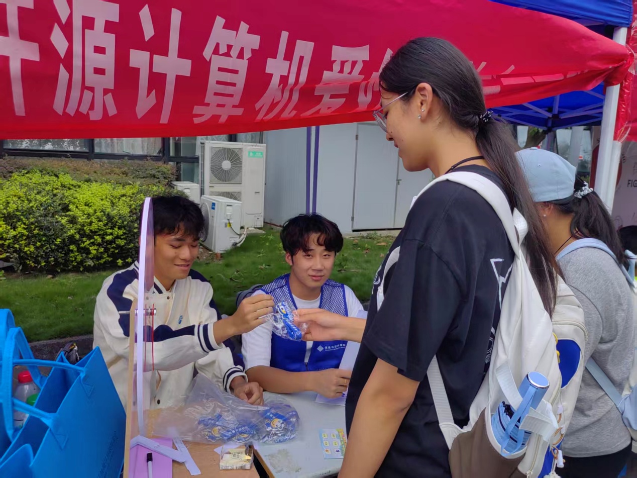 招新期间,校园广场主招新点始终人气高涨,精心设计的三大特色环节,让同学们在体验中感受开源文化的独特魅力——