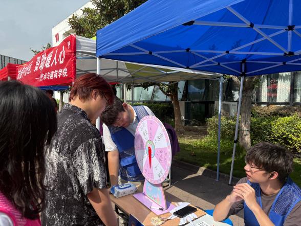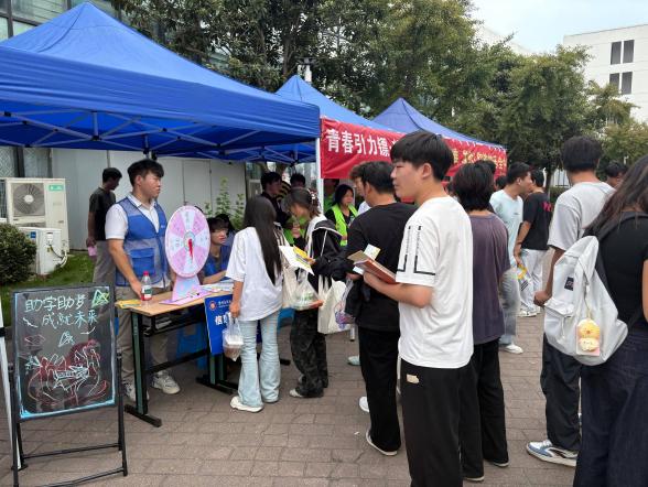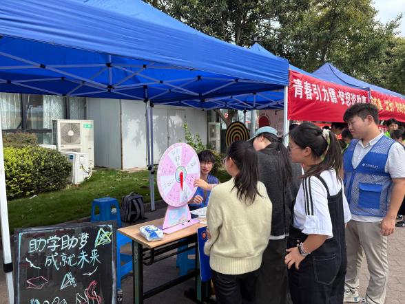 为进一步提高广大学子对资助政策的了解,校园资助政策广场宣传活动在食堂广场热烈举行。其中,由信息与软件学院精心策划并筹备的“资助知识幸运转盘”小游戏互动区,凭借其新颖的形式和丰富的内涵,吸引了大量学生驻足参与,现场欢声笑语不断,气氛活跃。