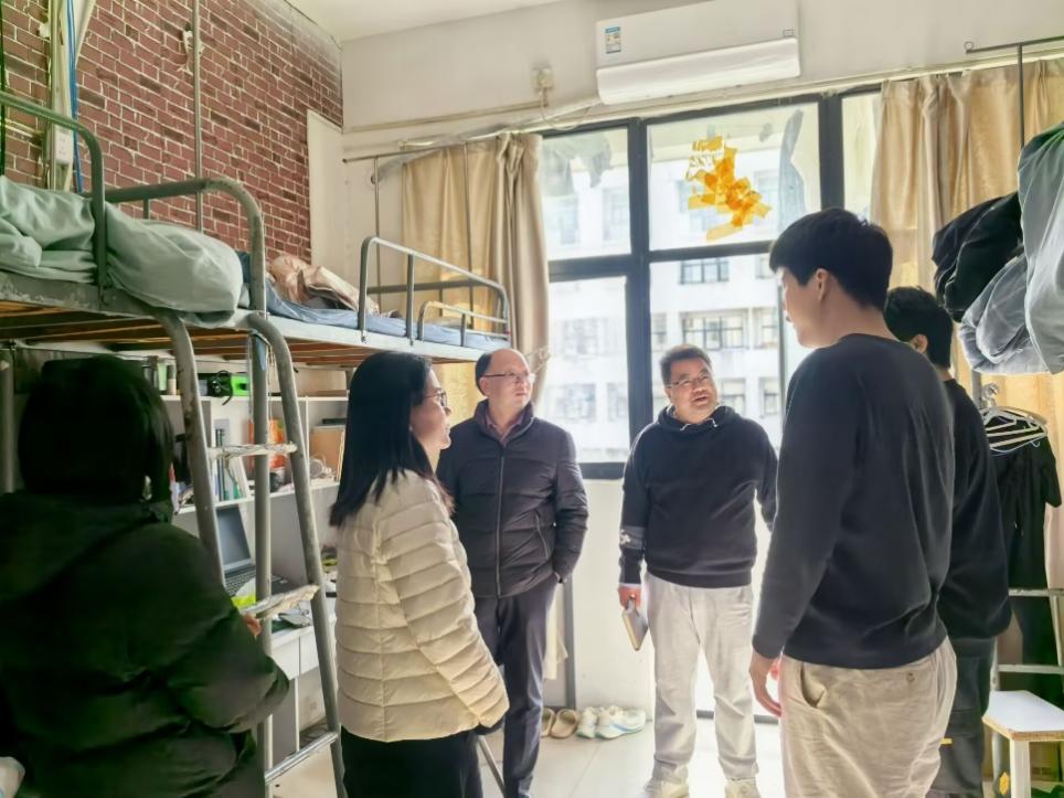 此次走访活动涵盖了学院多个学生宿舍区域。在走访过程中,学院领导与同学们进行了亲切地交流。领导们仔细查看宿舍的设施配备、卫生状况以及安全情况,关切地询问同学们在学习、生活中遇到的困难和问题。朱明宇副院长特别提醒同学们要时刻注意宿舍安全,遵守学校的规章制度,保持良好的生活习惯。