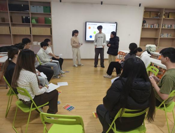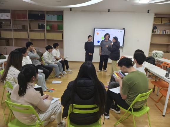 “智慧充电站” 环节为同学们提供了人际交往实战演练平台。针对大学生常见的人际交往情景,同学们通过“角色互换”情景剧进行了生动演绎。随后,在带领者引导下,全体成员共同头脑风暴,为每个情景量身打造“沟通金句”,沟通效果截然不同。同学们在观察、扮演与讨论中直观体会到,换位思考与有效的非暴力沟通,是化解人际矛盾、增进理解的关键桥梁。