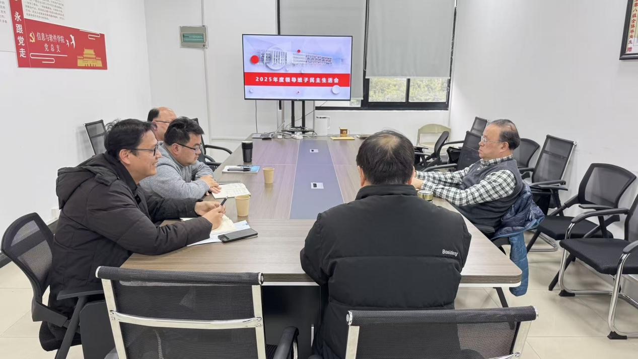 为深入学习贯彻习近平新时代中国特色社会主义思想,全面落实党的二十届四中全会精神,锲而不舍落实中央八项规定精神,推进作风建设常态化长效化,1月6日15:00,信息与软件学院在行政楼会议室召开2025年度专题民主生活会。学院党总支书记周肖兴主持会议,院长孙涌、副院长郑兰松出席会议,副院长李月峰、张书奎、朱明宇列席会议。