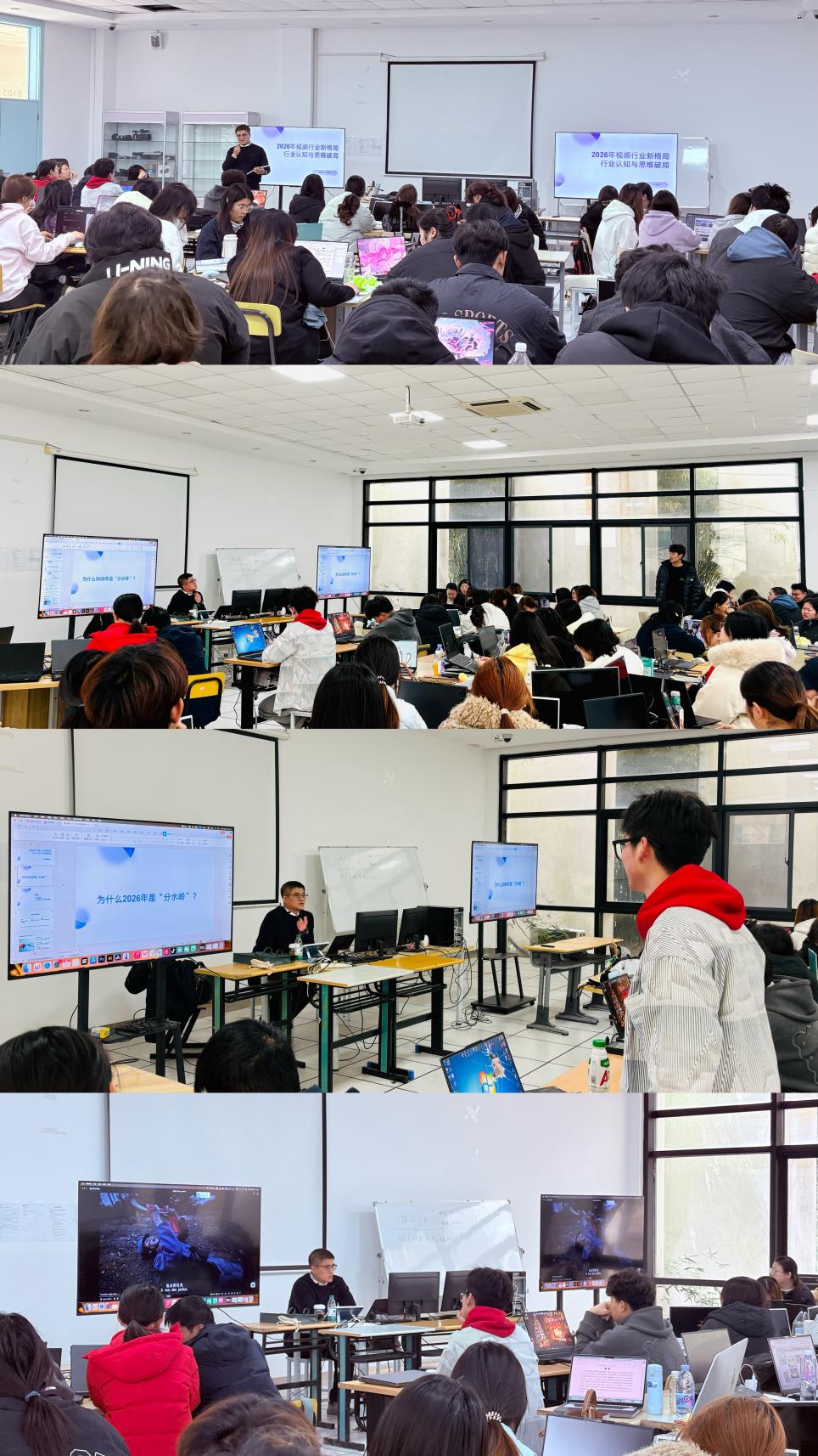 此外,孙总还为同学们梳理了AI时代下的内容消费新趋势,指出短视频内容正从单纯的时间消磨向情感疗愈转变,行业发展也从过去十年的“规模为王”,逐步迈向未来十年“效率与内容、体验稀缺性”并重的新阶段,为同学们未来的专业学习和职业发展指明了方向。